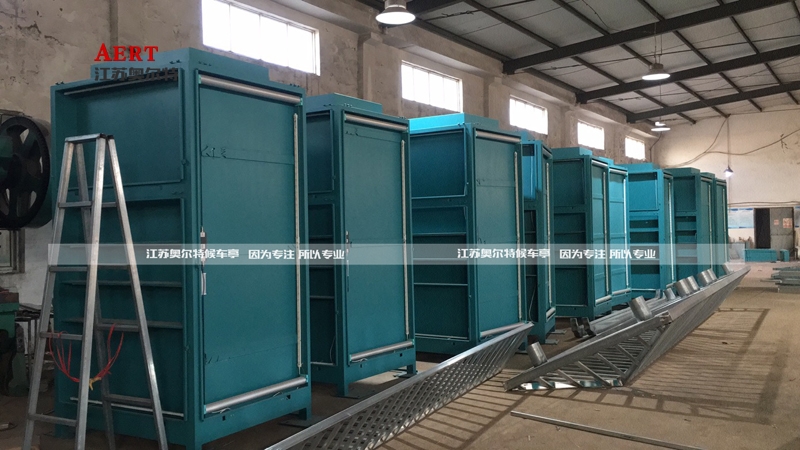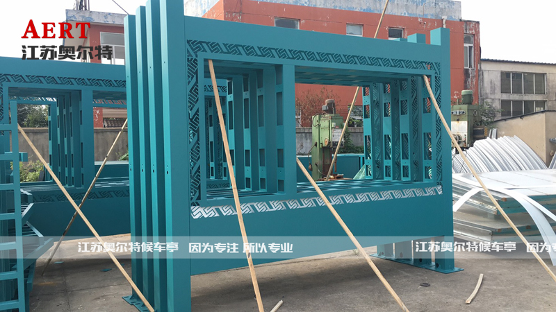 下面為生產(chǎn)中的視窗部分。已經(jīng)噴好漆的箱體部分已經(jīng)可以看出候車亭的大概樣貌。