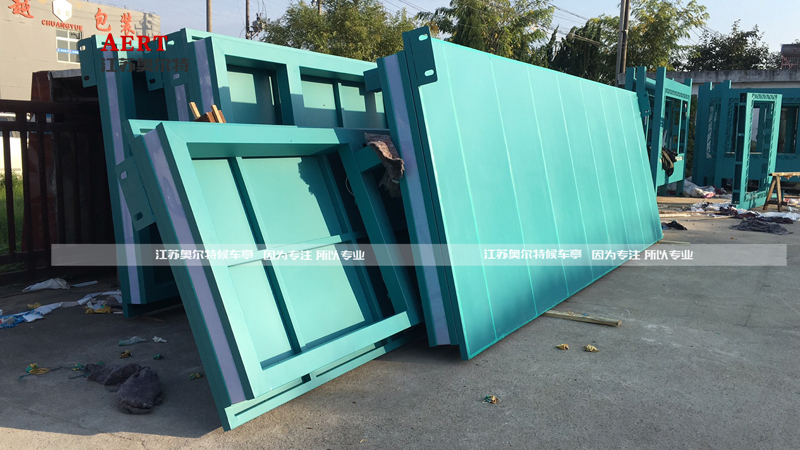 可以隨時(shí)安裝的候車亭頂棚。已經(jīng)裝車好的候車亭,正在準(zhǔn)備出發(fā)!每一批候車亭發(fā)貨前都是進(jìn)行試安裝!