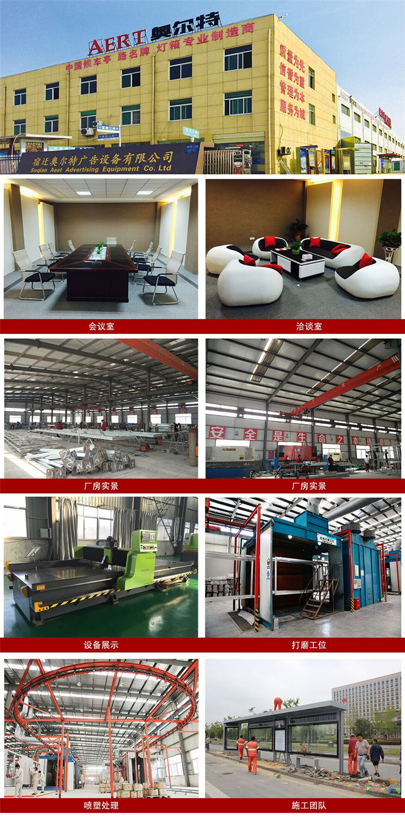 今日奧爾特工廠正式開工,年前有產(chǎn)品沒來得及做的客戶可以開始下單嘍。奧爾特公共設(shè)施專業(yè)設(shè)計(jì)、制作、安裝公交候車亭 公共自行車亭 交通標(biāo)志牌 指路牌燈箱 路名牌 廣告垃圾箱 閱報(bào)欄等。再次恭祝大家雞年大吉!